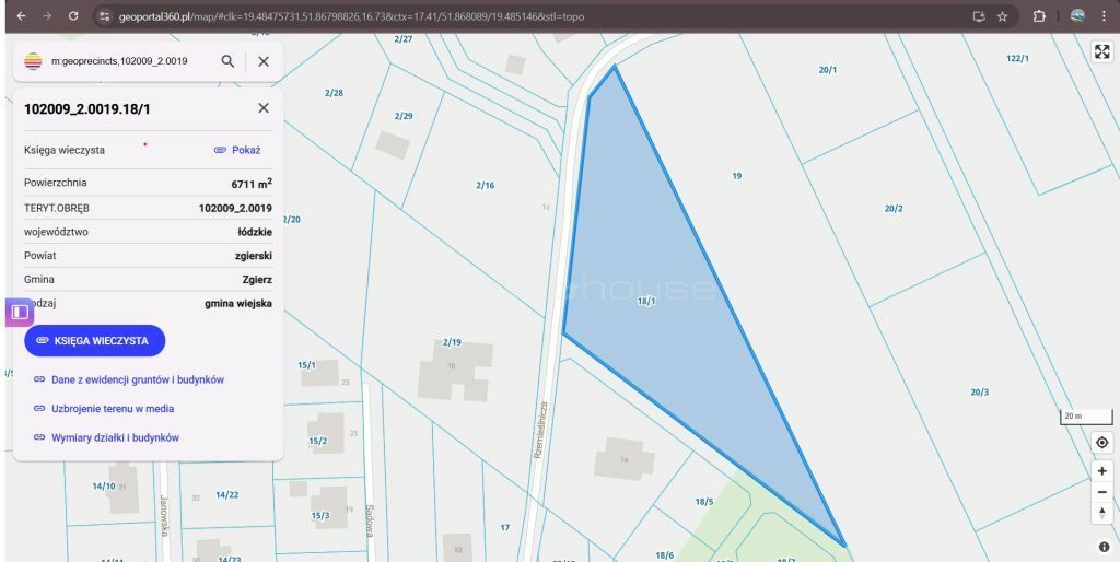 Działka o powierzchni 6711 m.kw, 3 Km o Zgierza. Janów gm.Zgierz Przedstawiam Państwu atrakcyjnie zlokalizowaną działkę położoną w Janowie, gm. Zgierz.Teren o powierzchni 6711 m.kw., w kształcie trójkąta, z wydanymi warunkami zabudowy, pozwala na zabudowanie 760 m.kw. powierzchni działki.